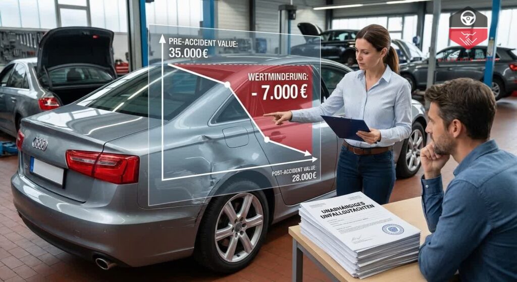 Nach einem Unfallschaden ist ein Fahrzeug häufig fachgerecht repariert – trotzdem gilt es am Gebrauchtwagenmarkt als Unfallfahrzeug und erzielt beim späteren Verkauf meist einen geringeren Preis als ein vergleichbares unfallfreies Fahrzeug. Dieser dauerhafte Wertverlust wird merkantile Wertminderung genannt.